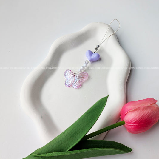 Purple Butterfly with Purple Beads Mobile Charm