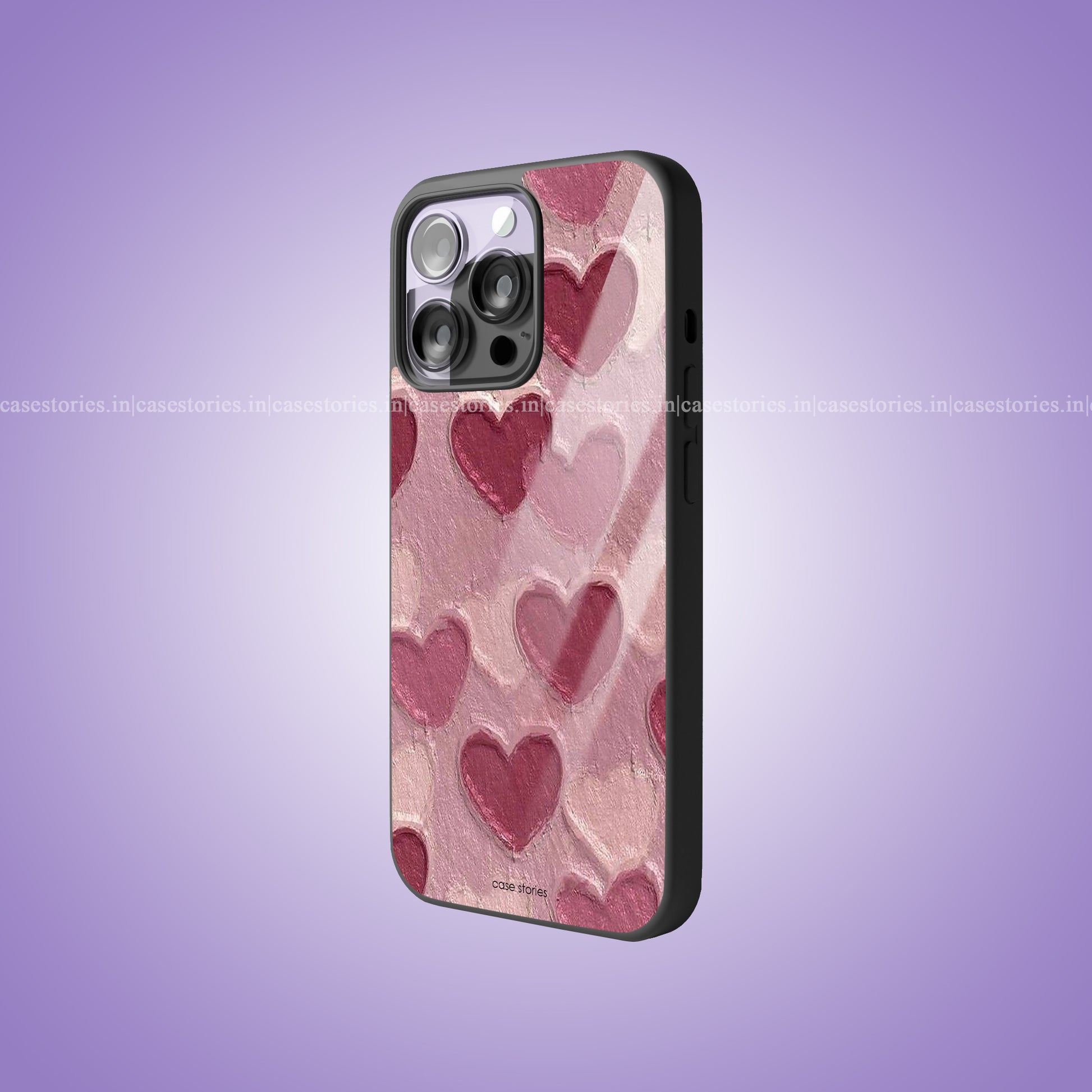 Oil Painted Hearts Pattern Aesthetic Premium Glossy Phone Case